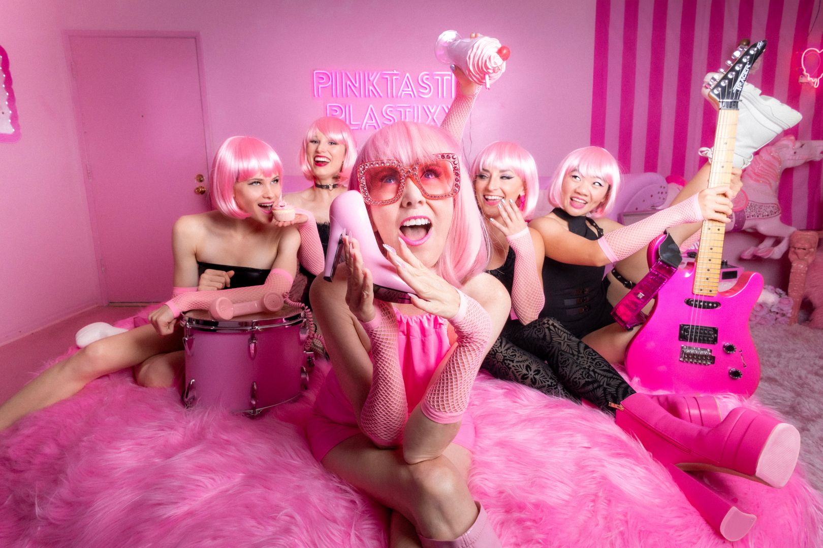 I think we take risks by putting ourselves out there but we have so much fun and when you are undeniable… they can’t deny you! Pinktastic Plastixx will be on CBS Dec 1st in a segment for The Weekend Wrap with Secret Los Angeles. We also are very much a brand AND a band. As The Pinkest Person in The World (officially ) I had to create a band who would wear some pink. haha